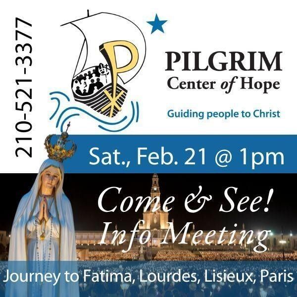 Journey with Mary & the Saints! You're invited to learn about a unique, 12-day Journey to Fatima, Lourdes, Lisieux & Paris. Imagine standing where Mary appeared to young Fatima shepherds, drinking from the miraculous Lourdes spring, walking an international Rosary procession, receiving graces where Mary gave us the Miraculous Medal in Paris, visiting St. Therese's convent, and more! The journey departs San Antonio July 6-16.